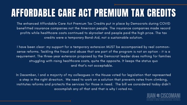 Ciscomani already provided his answer to that question: He voted against a three-year extension of the subsidies that make the Affordable Care Act actually affordable for most people.