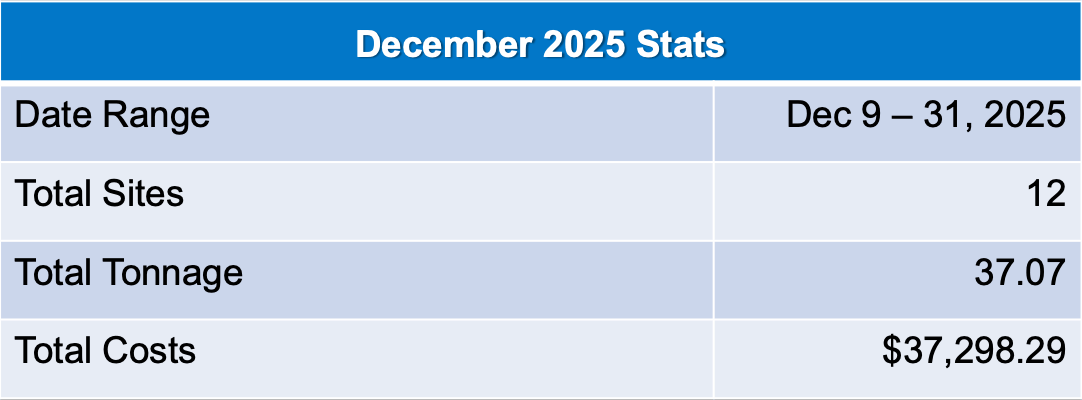 All three items are standing items on the agenda, with county staff offering updates to the Board of Supervisors. On Tuesday, the board learned county staff spent $37,000 in December to clean up 12 former homeless camps, removing 37 tons of trash as part of the clean-up.